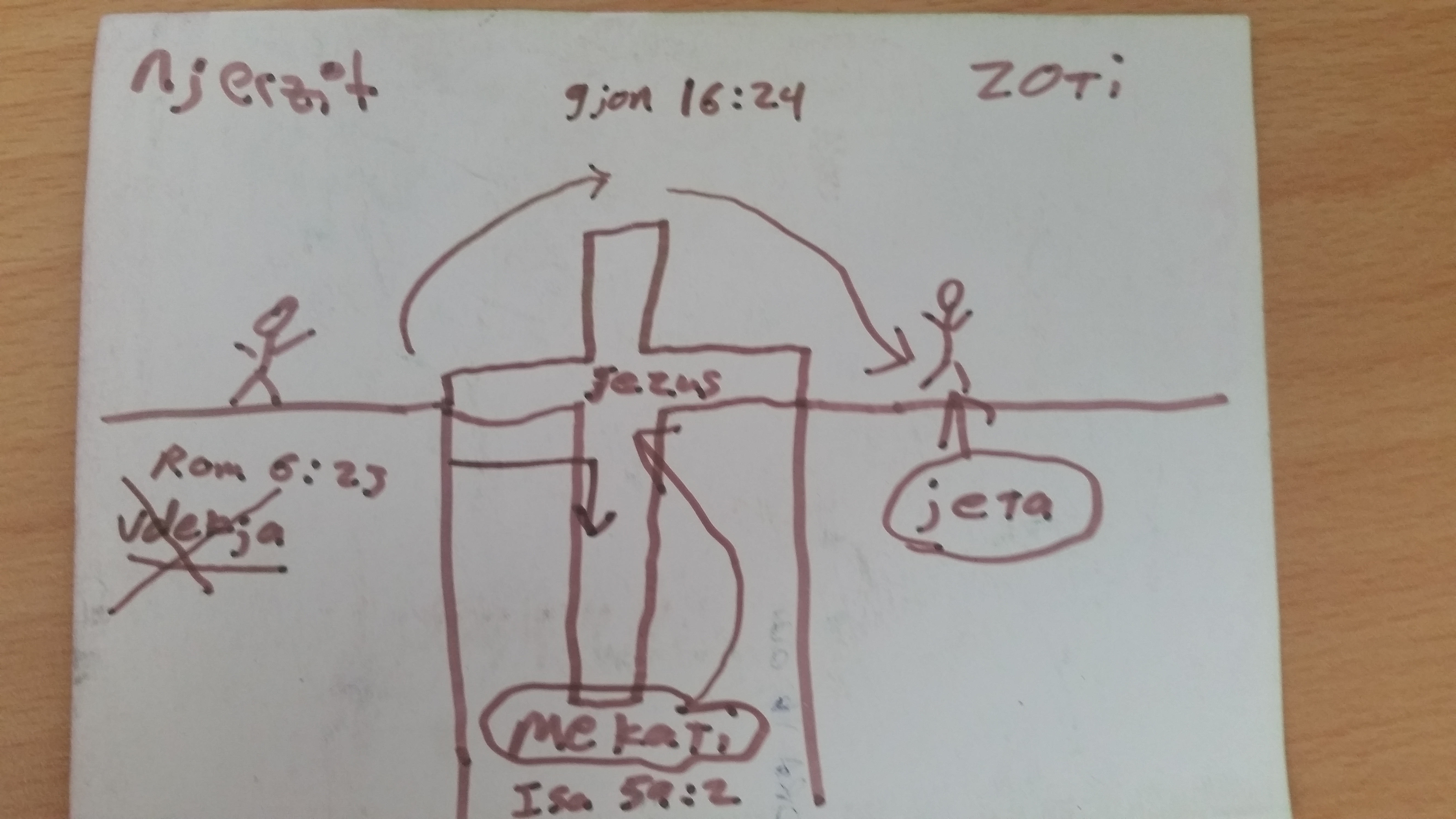 After chatting for a while I asked Aldo about his future plans. Like most kids in Albania he wants to go to America. I asked him why he thinks America is better than Albania. His response was mostly that he can have a much better job there, and a better life. I asked him, if America is so much better than Albania, why would I want to move to Albania for a year? He couldn’t answer that. I got to explain to him that I have a mission and a purpose more valuable than friends, family or money. I asked if he also wanted a purpose, & the joy that comes with it. He said yes. With Eri’s help I led him through the bridge illustration. I took a picture this time:
