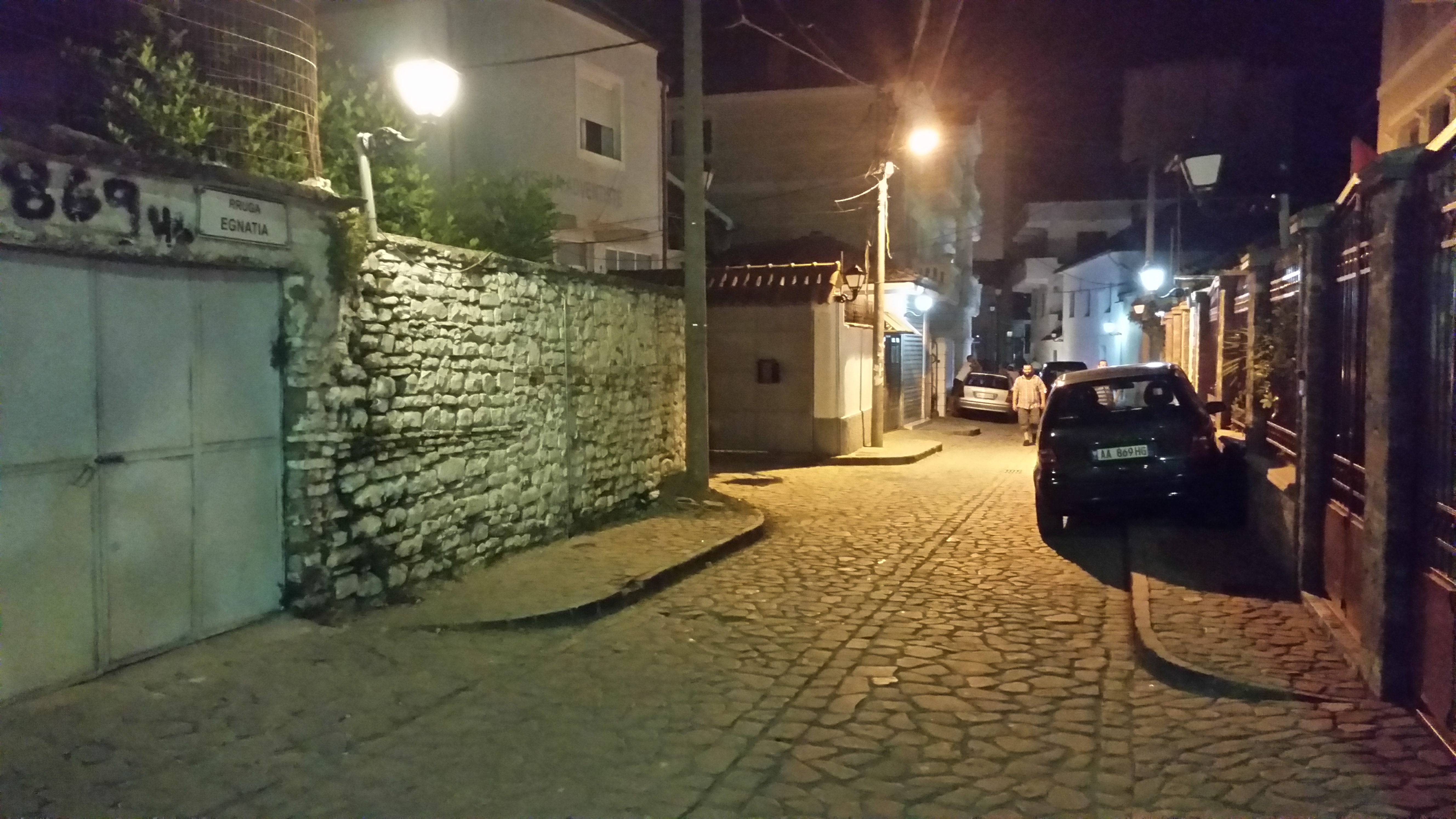 We had dinner with Eri, Ana, Edi, Kela, Hysen and Alda. They cooked some delicious traditional albanian food! The best dishes were the stuffed pepper, the byrek, and something like a potato lasagna. It was Alda’s birthday! We had a cake and ice cream to celebrate. After dinner we walked around the main area and passed out fliers till about 9:30, when all the kids went home. I got to practice my Albanian a little; i’m sure it was terrible. We finished settling in at the hotel, which is in the middle of the old castle in the center of town.